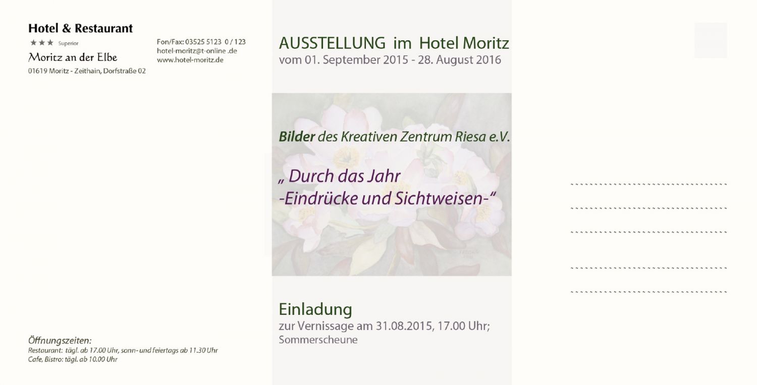 Die Werke werden in den öffentlichen Räumen des Hotels ausgestellt. Gegenwärtig findet die 10. Ausstellung statt. Zu besichtigen sind die Bilder des Riesaer Kreativen Centrum e.V. "Durch das Jahr - Eindrücke und Sichtweisen". In diesem Rahmen stellen 15 Künstler ca. 100 Bilder bis Ende Dezember 2016 aus.