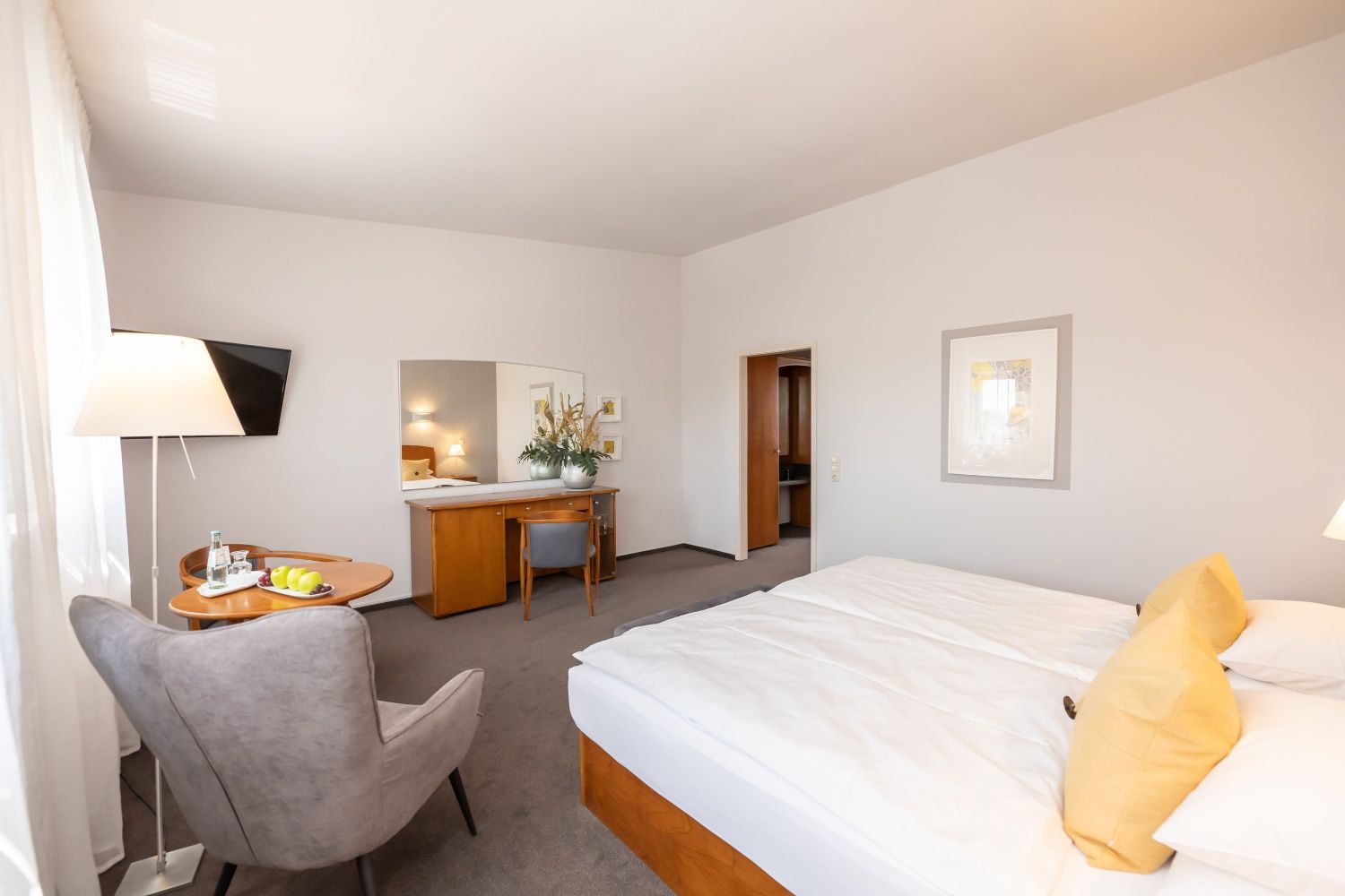 Unsere Zimmer sind großzügig und hochwertig eingerichtet, verfügen über Dusche/WC, Fön, über Flachbild-SAT-TV, WLAN-Empfang und sind bequem über den Aufzug erreichbar.