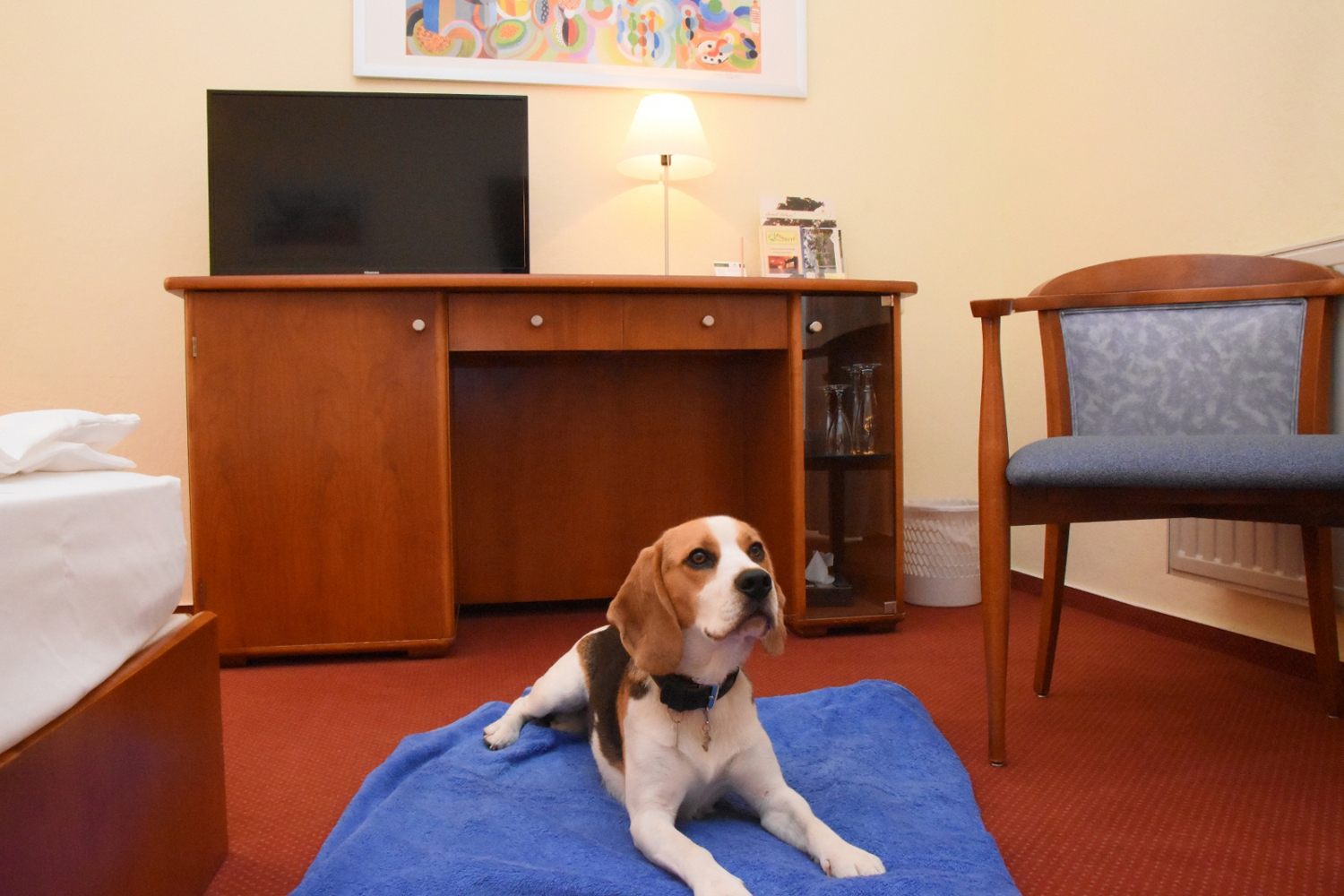 Brave Hunde sind bei uns auf der Terrasse und im Biergarten willkommen. Aus hygienischen Gründen ist Ihr Vierbeiner in unseren Restaurants nicht erwünscht und muss so lange in Ihrem Zimmer bleiben.